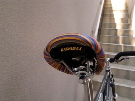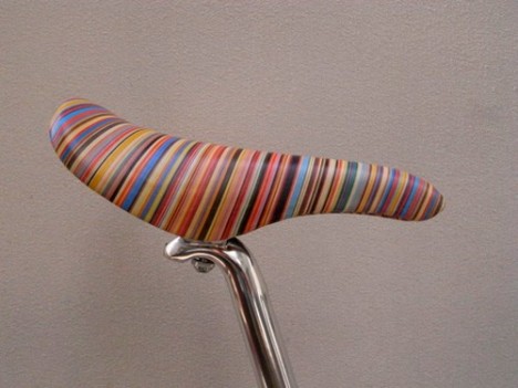 Paul Smith teamed up with Japanese bicycle saddle specialist, Kashimax, on a limited edition leahtersaddle covered in Smith’s signature stripes.