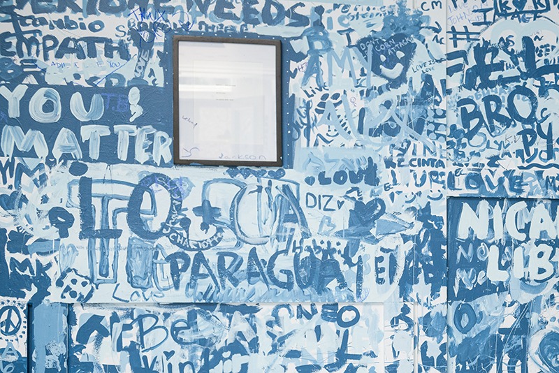 On the first day of the exhibition, a white row boat is placed in a large white hall. Brushes and cans of blue paint were provided for the audience to draw or write what they had in mind on the walls, the floor and even on the boat itself. Following the #yokoono hashtag on Instagram, it was clear that the room was flooded with messages and drawings in just two days. One would note also that contributions were diverse in terms of ideas and languages – that is the heart of Ono’s work. Her professional philosophy of late seems to be about finding the balance between people of different ethnicities, and one between war and peace.