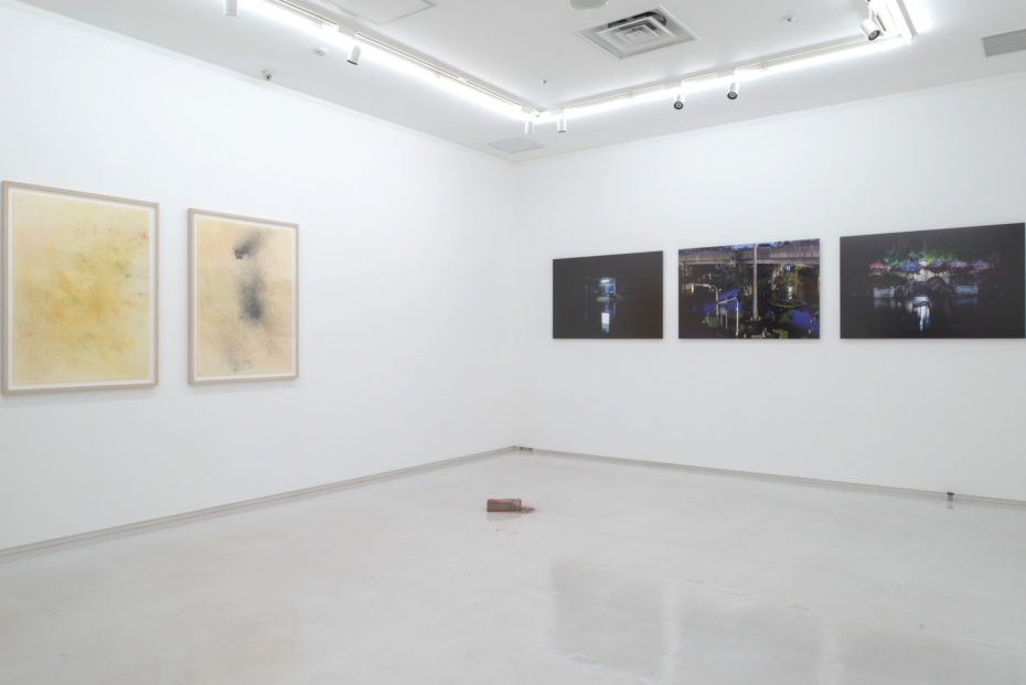 Miti Ruangkritya. Coloured Dust and Metallic Particles, 2017. The BAR Vol.10 Exhibition “Shaping Voices, Silent Skies” the exhibition at 8/ ART GALLERY/ Tomio Koyama Gallery, Tokyo, Japan. July 1 – 17, 2017. Image courtesy of Miti Ruangkritya, 2017
