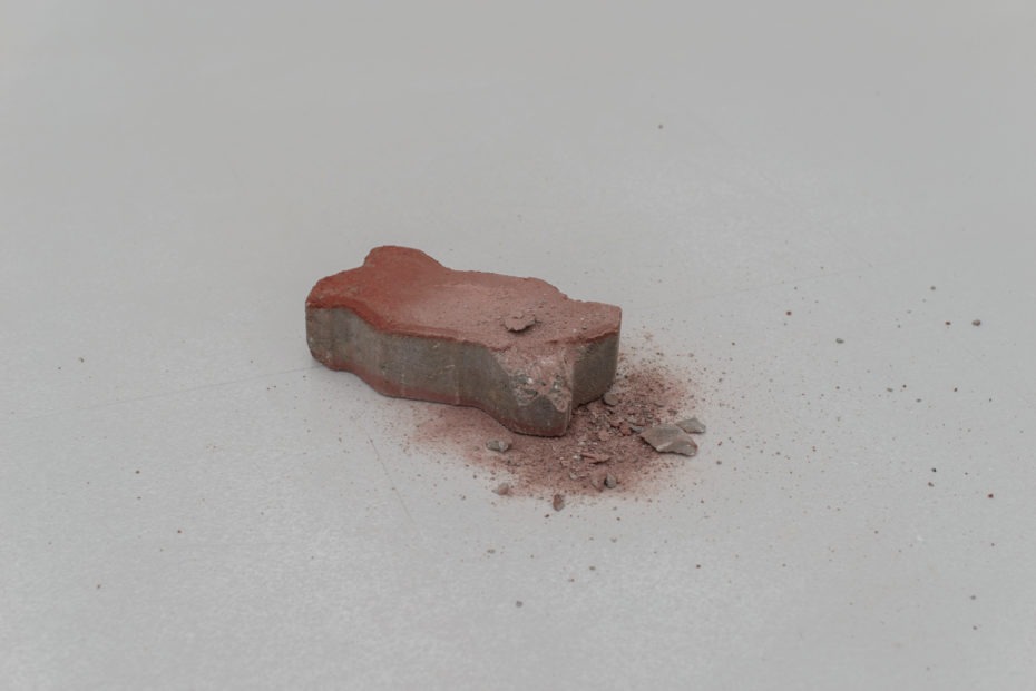 His method of production didn’t require much. In the exhibition space in Tokyo, beside the paper with the dust particles lies a piece of brick—not just a regular piece of brick, of course. The brick’s edge is dented as it has been banged up, with the residue dust piled next to it. Miti had taken this brick from the industrial estate, where certain factories showed their social responsibility by having small dust waste made into these bricks by local people who lived in the area. Though this process helps reduce dust waste by turning a portion of them into usable bricks, the neglected dust waste were distributed into open air, floating around into the heart of Bangkok and leading to extremely detrimental health issues for residents.