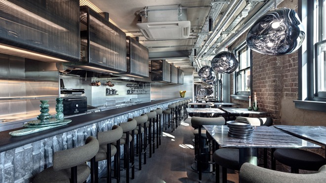 “ร้านอาหารตกแต่งโดยใช้โทนสีเดียว ซึ่งเป็นสิ่งที่เน้นมากในคอลเลคชั่นใหม่ และเราก็ให้ความสำคัญกับวัสดุที่เลือกใช้ ดังนั้น ผนังห้อง โต๊ะอาหาร รวมถึงองค์ประกอบต่างๆ ในร้านที่ทำจากสเตนเลสสตีลจึงย้อนกลับไปที่ไอเดียเหล่านั้นทั้งหมด” เจสสิกา สตรัตต์ แห่งทอม ดิกซัน กล่าว