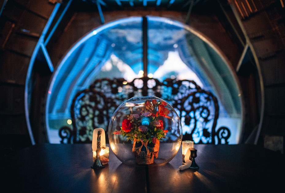 The venue itself is centred around a “futuristic food journey” and the first chapter is based on a “diaspora” theme, whereby exotic creatures seek refuge on Na-Oh after a doomsday situation. This can be seen in the many stuffed creatures and unique table arrangements that include flowers, skulls and candles.
