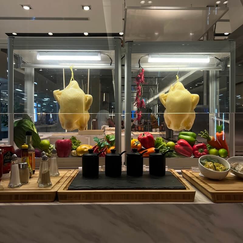 การเช็คอินที่สุวรรณภูมิรวดเร็วตามที่ควรจะเป็นเพราะว่ามีช่องไพรออริตี้สำหรับผู้โดยสารบิสซิเนสคลาส จากนั้นก็ไปใช้ช่องฟาสท์แทร็คเพื่อสแกนกระเป๋าขึ้นเครื่องและใช้ Miracle Lounge ที่บริเวณเกท D ได้ ภายในเลาจ์มีอาหารและเครื่องดื่มแต่ว่าคนเยอะมากเนื่องจากมีสายการบินที่ใช้เลาจ์นี้หลายสาย แต่ว่าผมเดินทางคนเดียวก็ง่ายหน่อย ทานข้าวเสร็จก็ไปนั่งเคาน์เตอร์ที่เป็นเก้าอี้สูงได้ เปิดคอมทำงานทำอะไรไปจนถึงเวลาขึ้นเครื่องค่อยเดินไปเกท D6 ที่อยู่แทบจะตรงหน้าเลาจ์พอดี