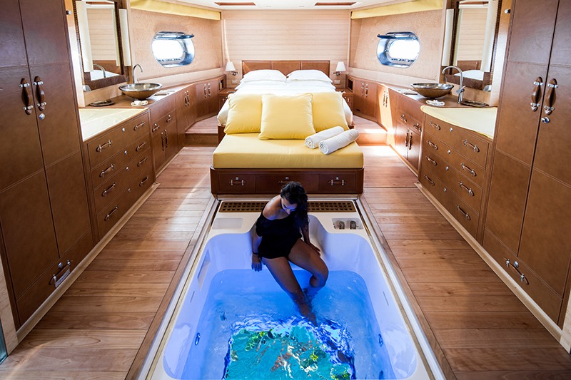 Soneva in Aqua marks the last, and easily the most distinguished, option for spending your time in the Maldives. This 19.28-metre-long yacht operates out of Soneva Fushi, decked as a floating villa with two luxurious guest cabins housing up to six guests. The master suite provides not only a full-sized en-suite shower room but also a sunken glass bottom bathtub, while the exterior space features a jacuzzi, day beds and sunbathing bow nets.