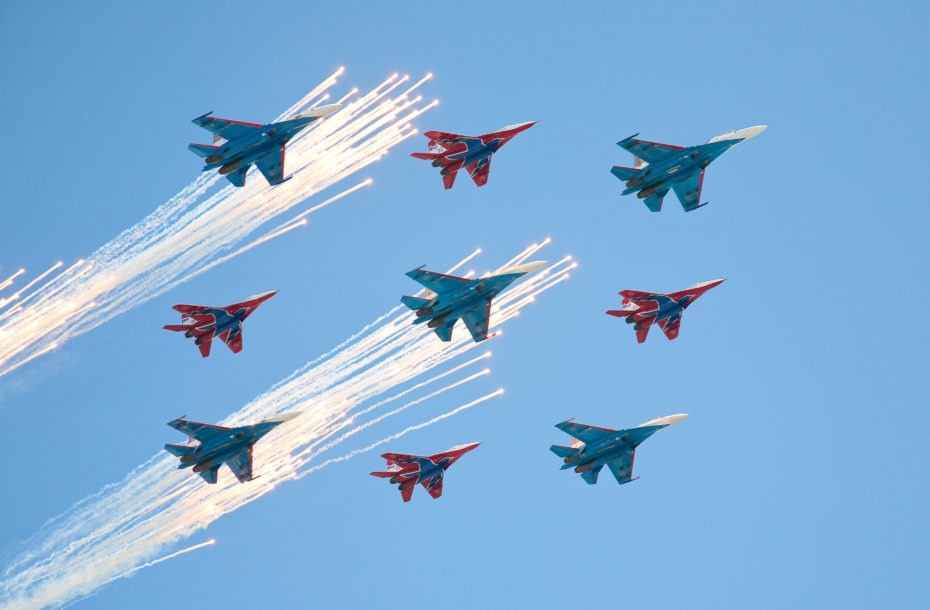 The Russian Knights have flown in the United States and Canada, and in 1995 they were invited to perform at the Malaysian LIMA’95 Airshow. However, on their flight back the Russian Knights planned to refuel in Vietnam. Due to foggy weather and near zero visibility, it was a day that would change the the history of the Russian Knights forever. Three of the jets crashed into the mountains. This was a huge loss for the Russian Knights, and in 1996 the squadron appeared in public again with only four aircrafts. In 2004, there was great excitement when five new Su-27 jets joined the four existing Russian MiG-29 aircrafts. The nine aircrafts flew together in a formation called the ‘Kubinka Diamond’, a historic moment in aviation as it used two different types of aircrafts flying in a close pattern. In addition, the Russian Knights also perform solo fights to fully highlight the performance of Russian-made aircrafts.