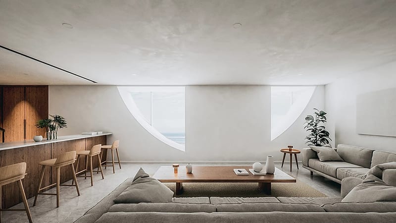 Blending beauty and function seamlessly, the Dune House in Cape Cod, Massachusetts is the studio’s prime example. The house lies along the very beach principal designer, Selim Vural often revisits while on vacation. Born out of a nighttime fishing expedition turned eureka moment, the unexpected vibrant flashing of a squid, sparked immense inspiration. “If squids can power themselves, so should houses,” says Vural.