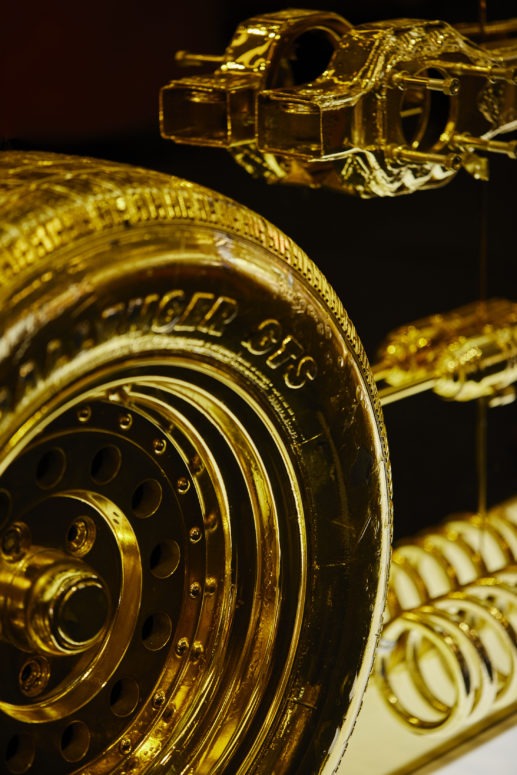 One of the highlights of Precious Garage was a Golden Corvette designed by Puerto Rican visual artist Desi Santiago. The car was displayed against two walls, one of gold that featured Corvette parts and the second in white, adorned with a mechanic’s tools, reflecting the elevation of the ordinary. Just like the nails, nuts and bolts that became iconic to Cartier. In addition to the featured art work, the Juste Un Clou and Ecrou de Cartier collections were also exhibited.
