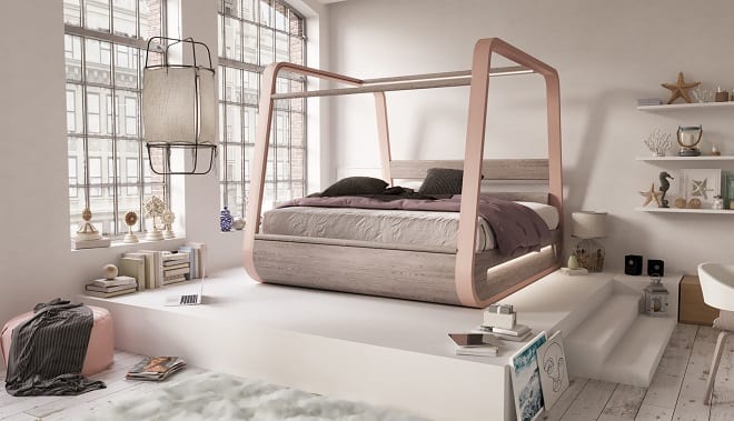 ฟาบิโอ วิเนลลา สถาปนิกและนักออกแบบภายในชาวอิตาเลียนเป็นผู้ออกแบบเตียง HiBed ให้กับบริษัทผลิตเฟอร์นิเจอร์ Hi-Interiors รูปทรงของเตียงดูโมเดิร์นและเพรียวบางอย่างมีรสนิยม เตียงไฮเทคนี้ติดตั้งจอขนาด 70 นิ้วแบบม้วนเก็บได้ ซึ่งเอื้อต่อการนอนดูสตรีมมิ่งรายการโปรดหรือถ้าจะทำงานก็ย่อมได้เช่นกัน ไม่เพียงเท่านั้น เตียงอัจฉริยะรุ่นนี้ยังติดตั้งโปรเจคเตอร์ที่มีความคมชัดระดับ 4K ให้เลือกใช้ด้วยถ้าแค่ไฮเดฟธรรมดายังไม่จุใจ