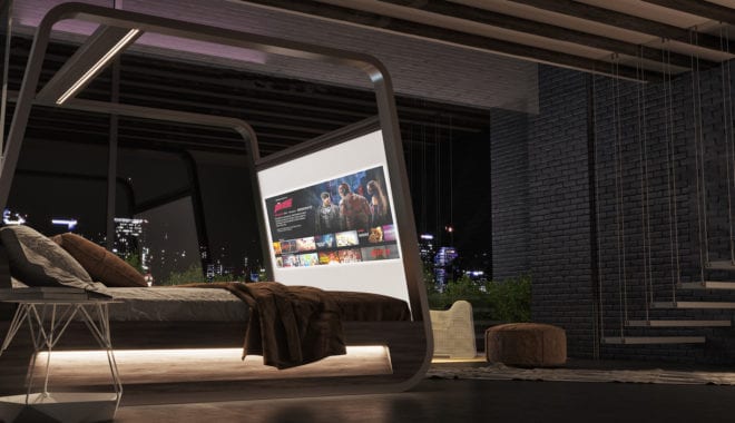 เปิดประสบการณ์ใหม่แห่งการดูหนังและฟังเพลงด้วยเตียงอัจฉริยะที่มีหน้าจอขนาด 70 นิ้วและแอปพลิเคชั่นมากมาย