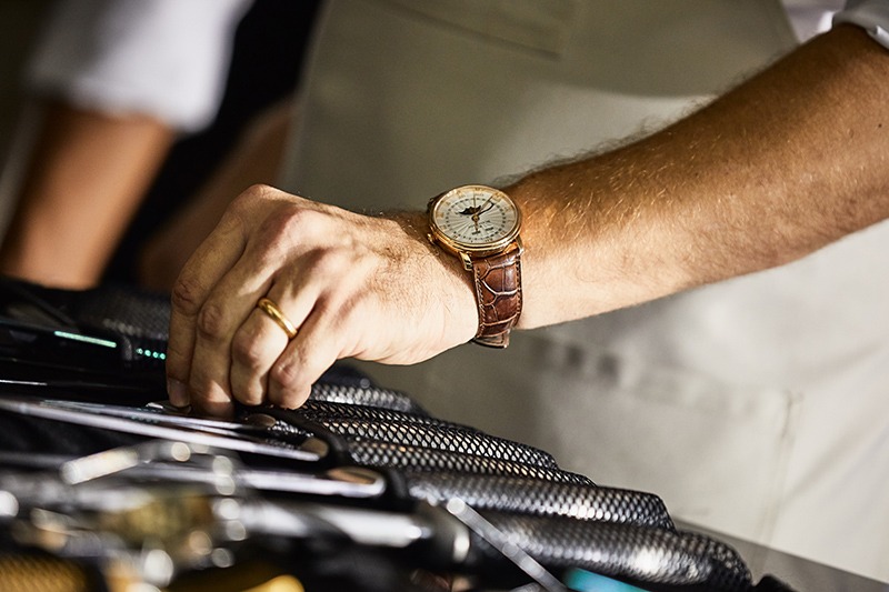 Chef Mathias went for the self-winding Villeret Moon Phase in 40 mm size. Honestly, we were surprised by the choice. We have always thought of the Villeret line as the watch for the boardroom. But, here, Chef Mathias has demonstrated that red gold and complete calendar complication can go well with an apron as well as they do a business suit. Everything really comes down to lifestyle choices. Boundaries are just a set of rules we apply out of habit or conformity.