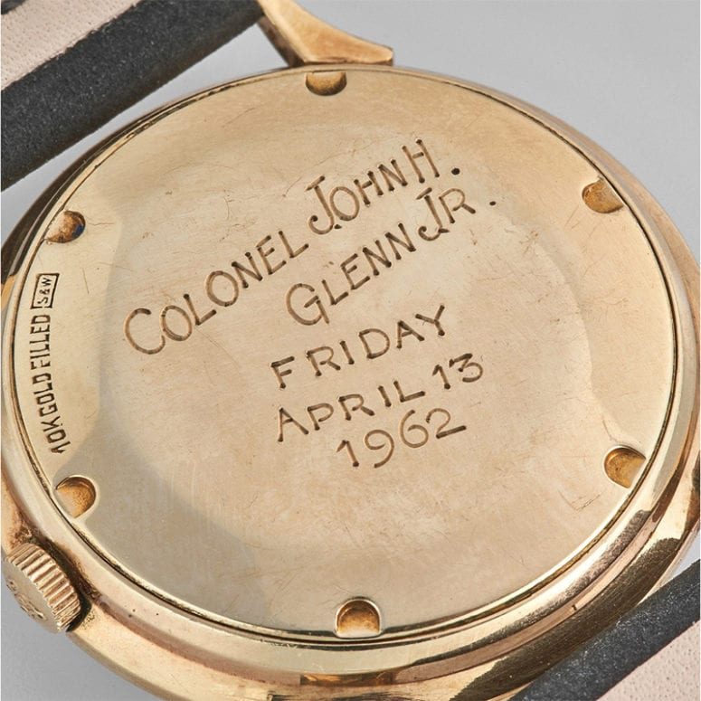Fast forward to 1962, on Friday 13 April, 13 US senators gathered at the Anti-Superstition Society in Chicago. The purpose was to present this special watch to Colonel John Glenn who became the first American to have orbited the earth about two months earlier in his spacecraft capsule number 13 during the Friendship 7 mission. On the dial of this watch, all hour numerals were replaced by the number 13, which, according to the provided congressional record, was considered by Colonel Glenn to be his lucky number as well.